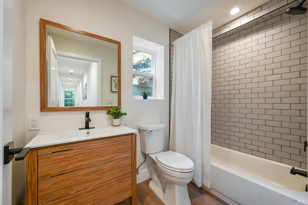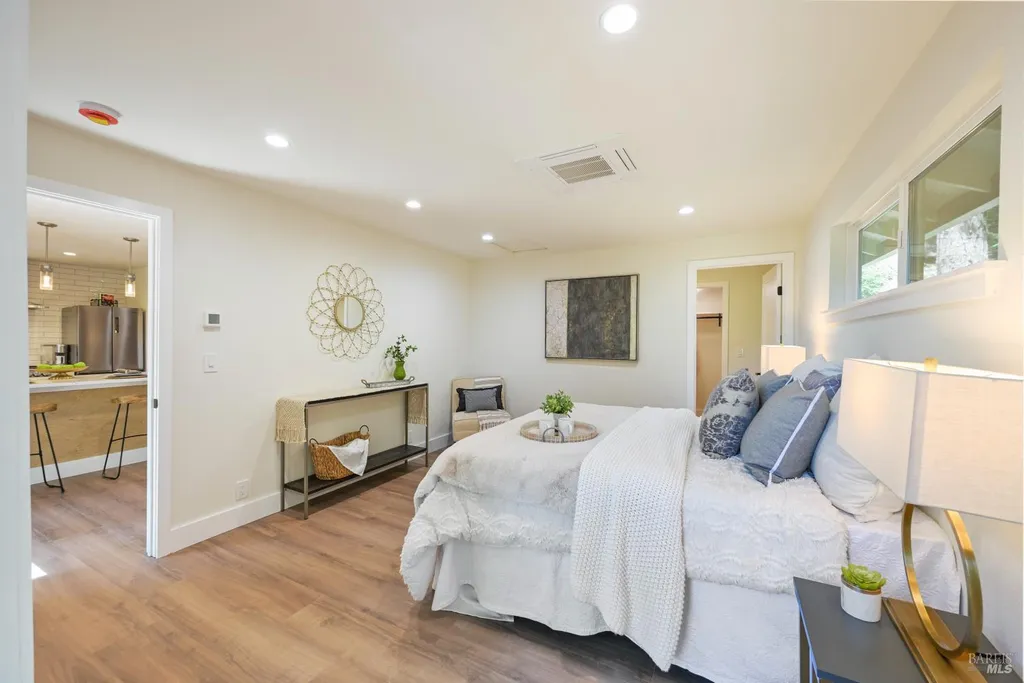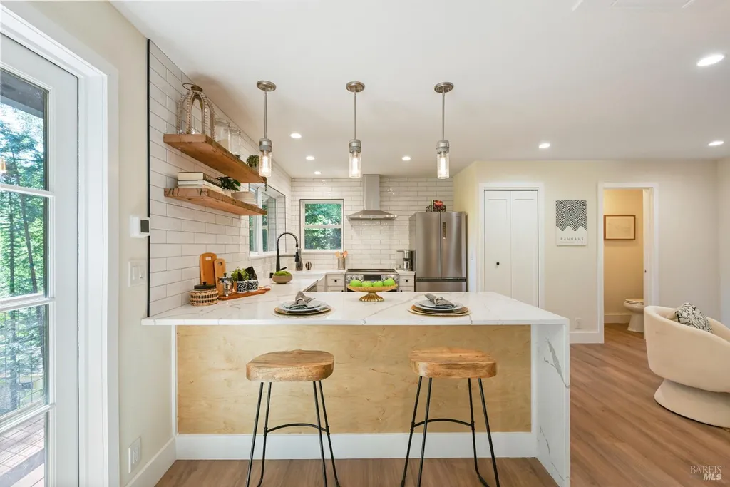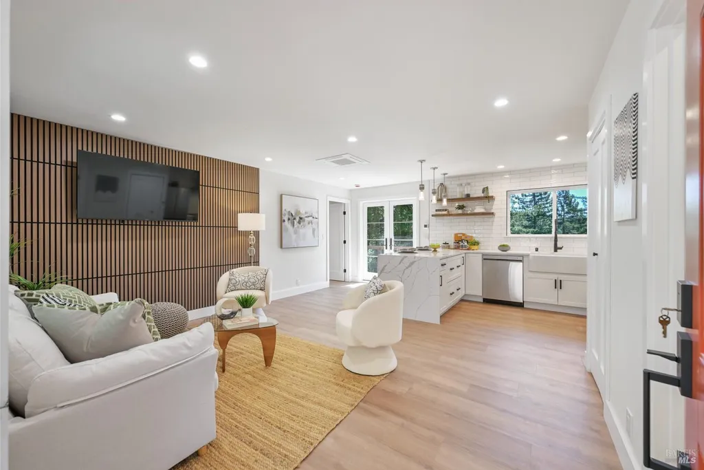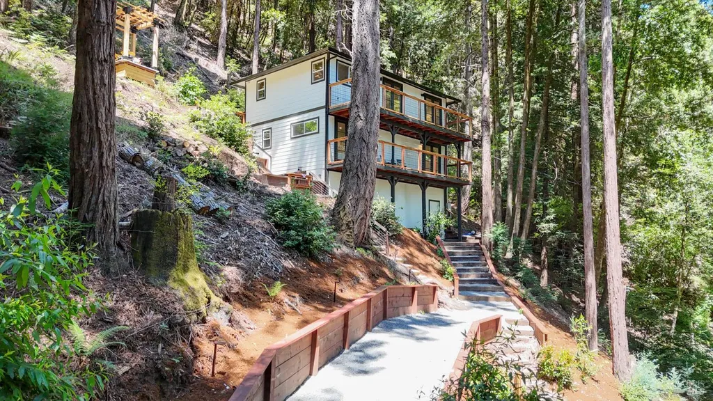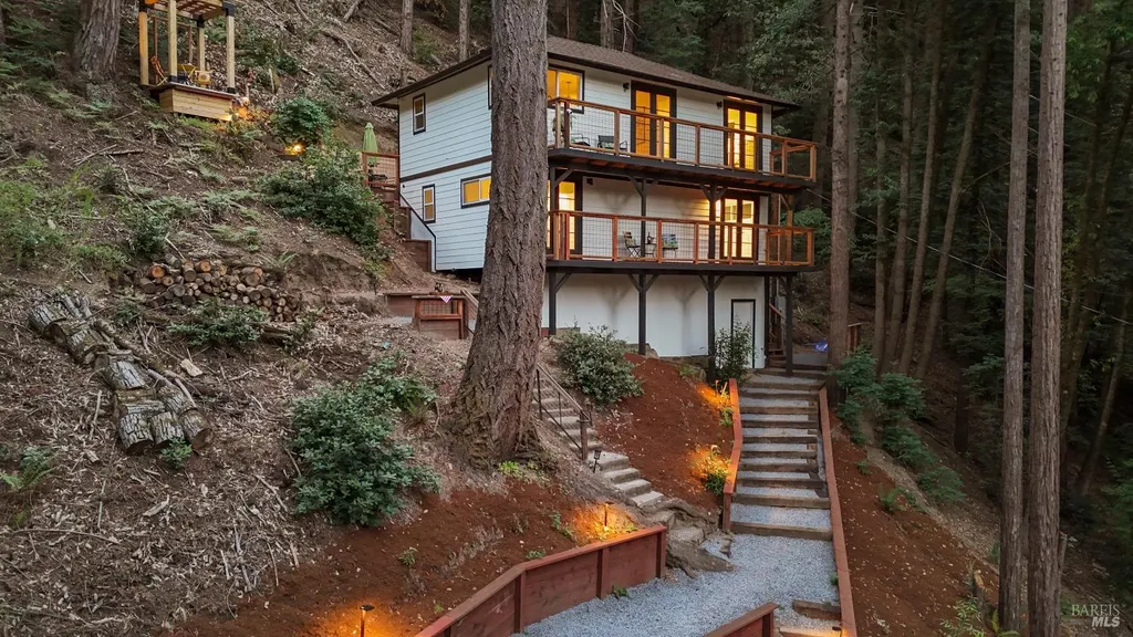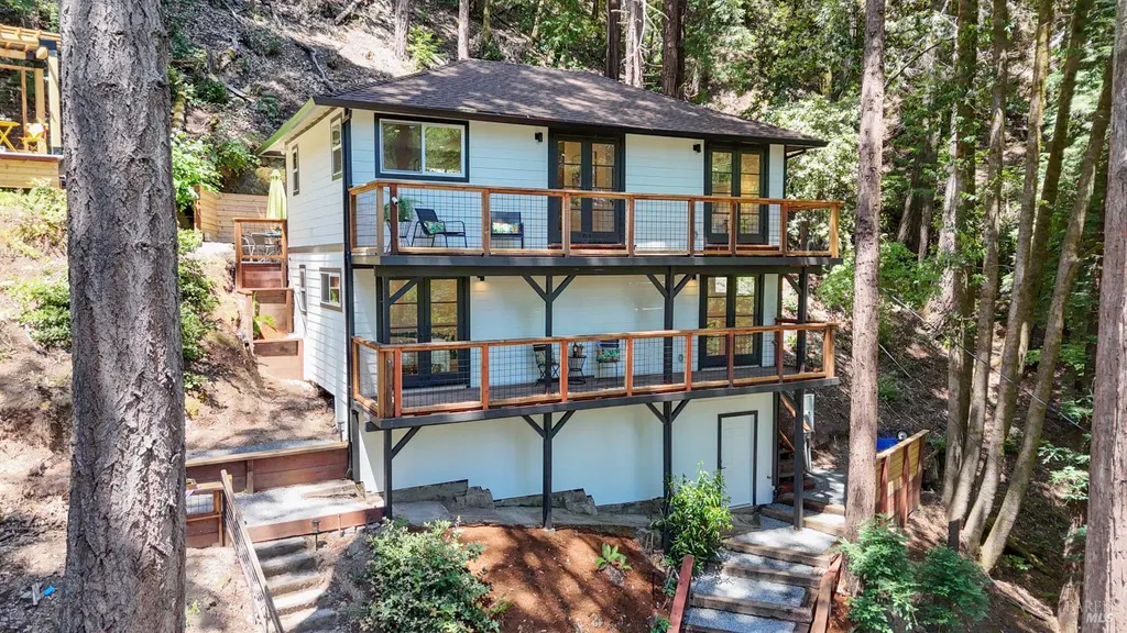 Recently renovated Guerneville retreat just 0.5 miles from downtown, river access, shops, and cafes. This stylish 3BD/3BA home offers a flexible layout ideal for guests, dual living, or creative use. Upstairs features a bright open-concept kitchen with quartz waterfall counters, custom redwood shelving, and updated appliances. The primary suite includes a walk-in closet and ensuite bath, with a guest bath in the main living area. Downstairs, a separate entrance leads to two bedrooms and a full bathperfect for privacy or hosting. Fully updated systems include new plumbing, electrical, siding, windows, insulation, and multi-zone ductless HVAC. A finished storage space, low-maintenance landscaping, and terraced garden beds enhance the outdoor experience. Ample off-street parking includes space for a boat or RV, with exterior power ready for potential EV conversion. Located on a quiet, dead-end street with public sewer and water, and out of the flood zone. Own Your Dreams!