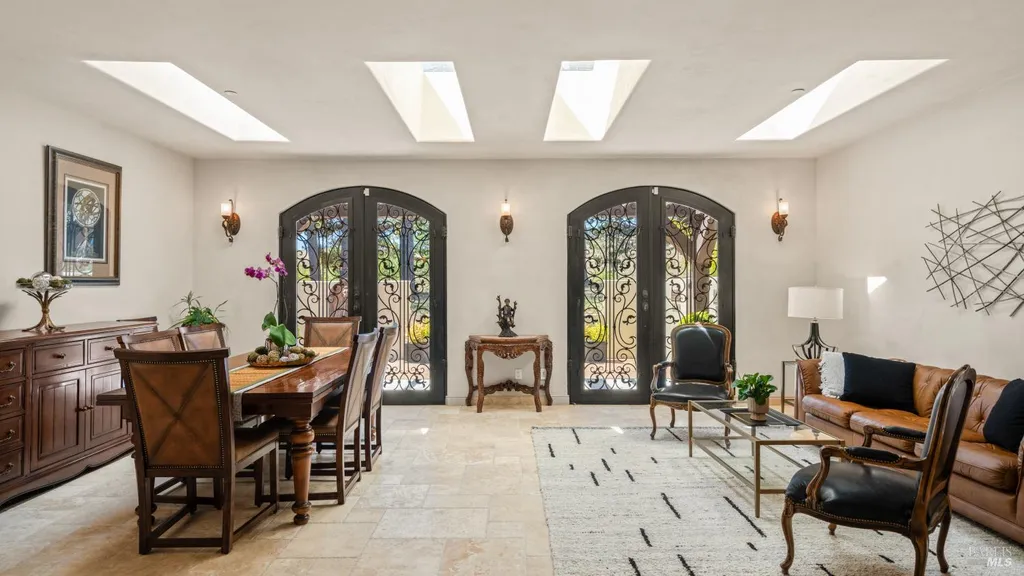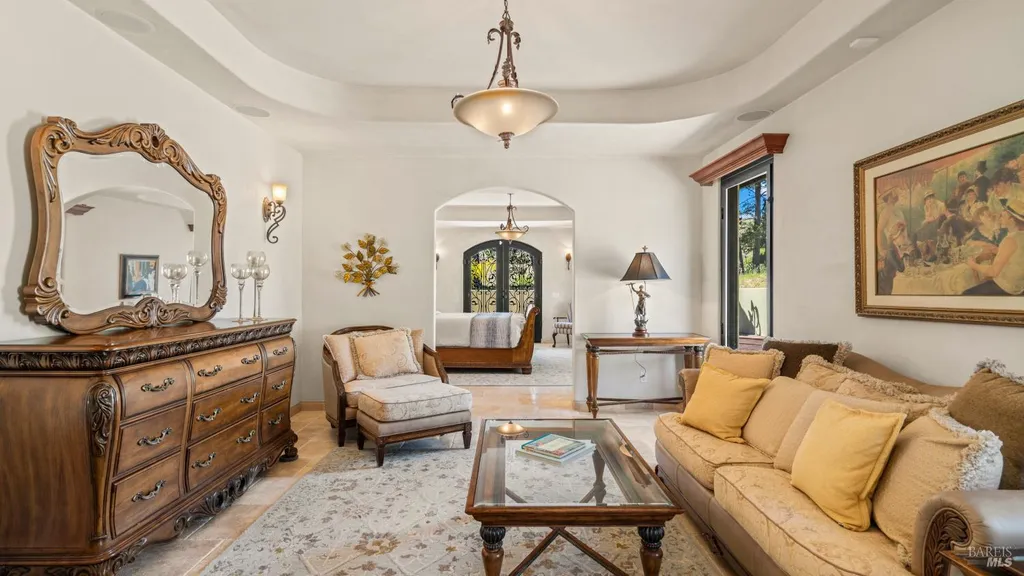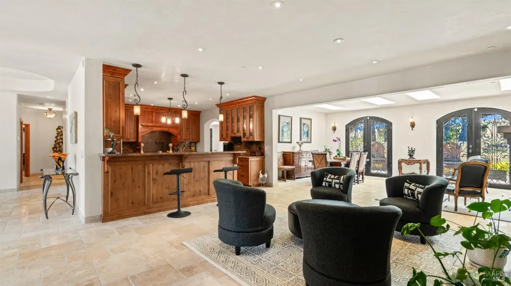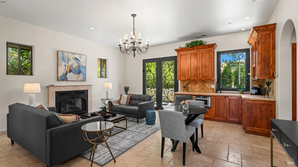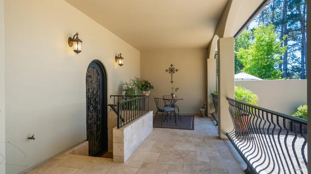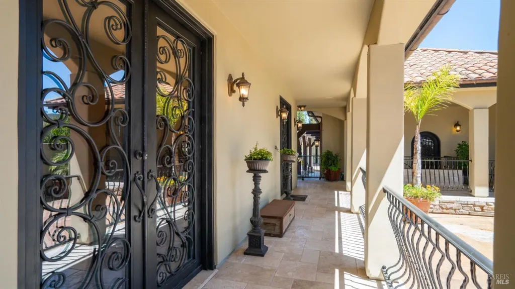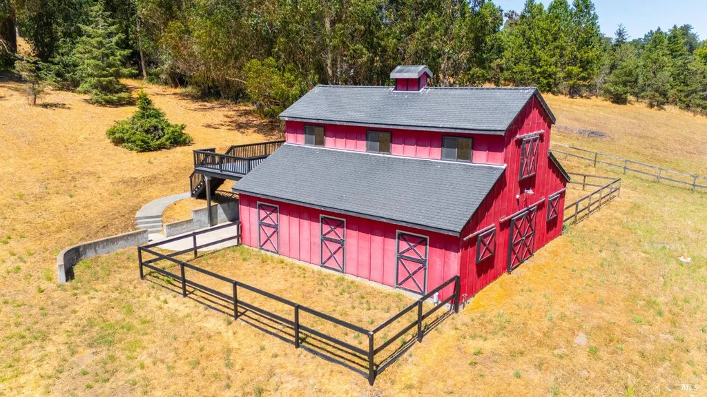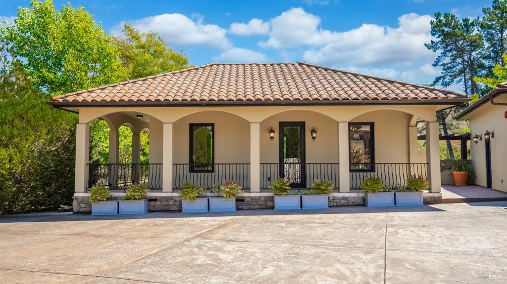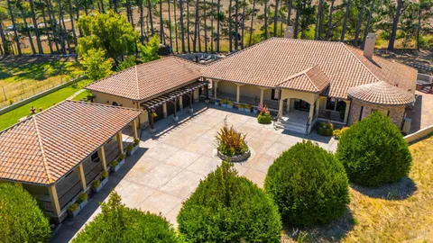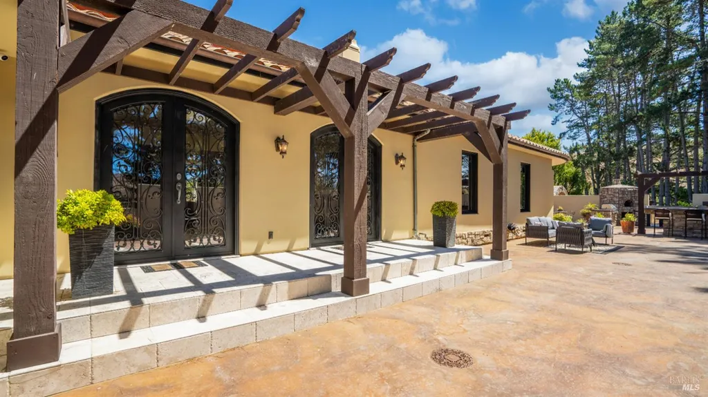 Discover an exquisite, gated Mediterranean-style estate nestled on 9 acres of serene Sonoma County countryside, minutes from Bodega's coastal charm and towns like Petaluma, Bodega Bay and Sebastopol. The property offers a luxurious retreat with sweeping views, privacy, and refined design, a dream for those seeking elegance and tranquility amidst rural beauty. The main residence, built in 2007, spans approximately 3,789 sq ft, featuring 4 bedrooms and 3.5 baths designed with intentional separation for privacy and comfort. The primary suite is strategically tucked away from the communal areas and boasts luxurious touches such as iron-framed doors and windows, and heated travertine flooring. A beautifully appointed 640 sq ft casita, crafted with the same Mediterranean elegance as the main home, offers a welcoming space for guests. The property includes an expansive 5,000 sq ft outdoor entertainment courtyard, complete with a fully equipped kitchen, an inviting outdoor fireplace, an authentic imported Italian pizza oven, and tranquil water features, perfect for al fresco gatherings and leisurely afternoons. Included is a classic two-story barn with 5 stalls, tack room and paddocks. Upstairs in the barn is unfinished space with electricity, offering endless possibilities.