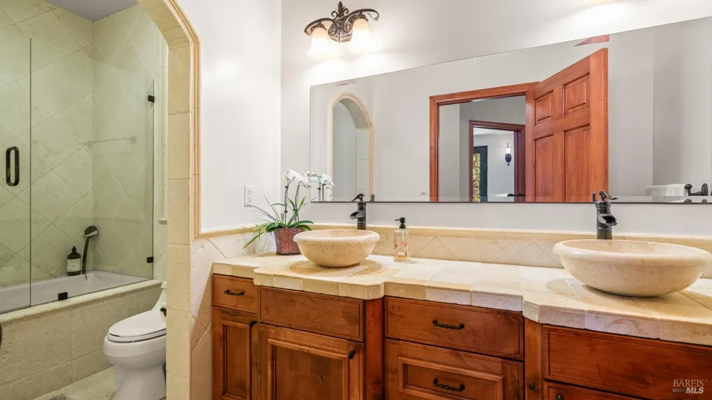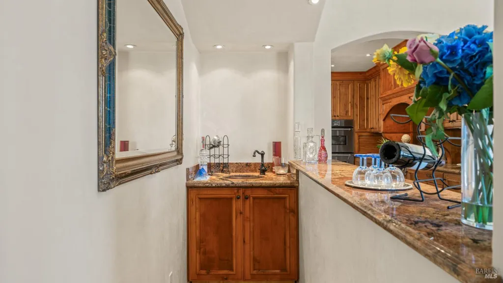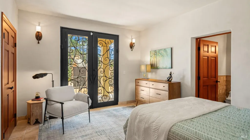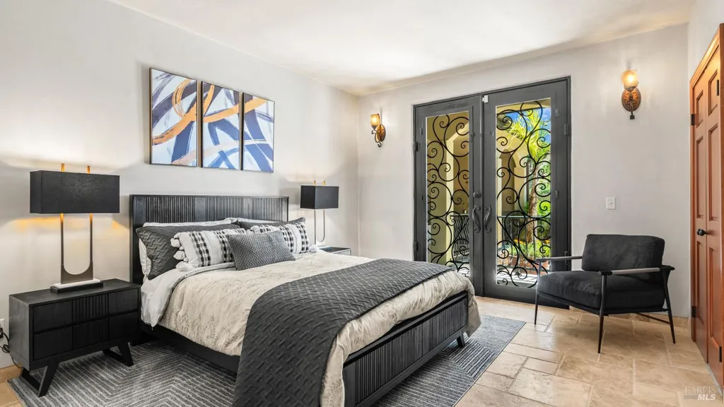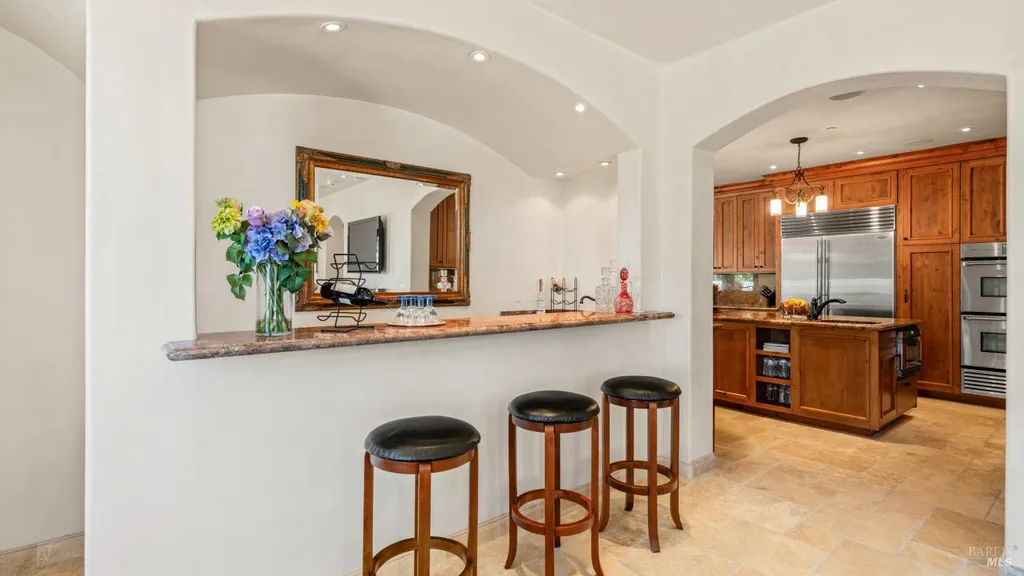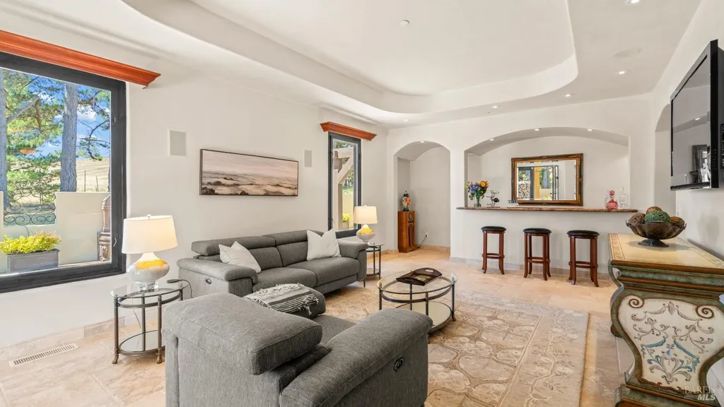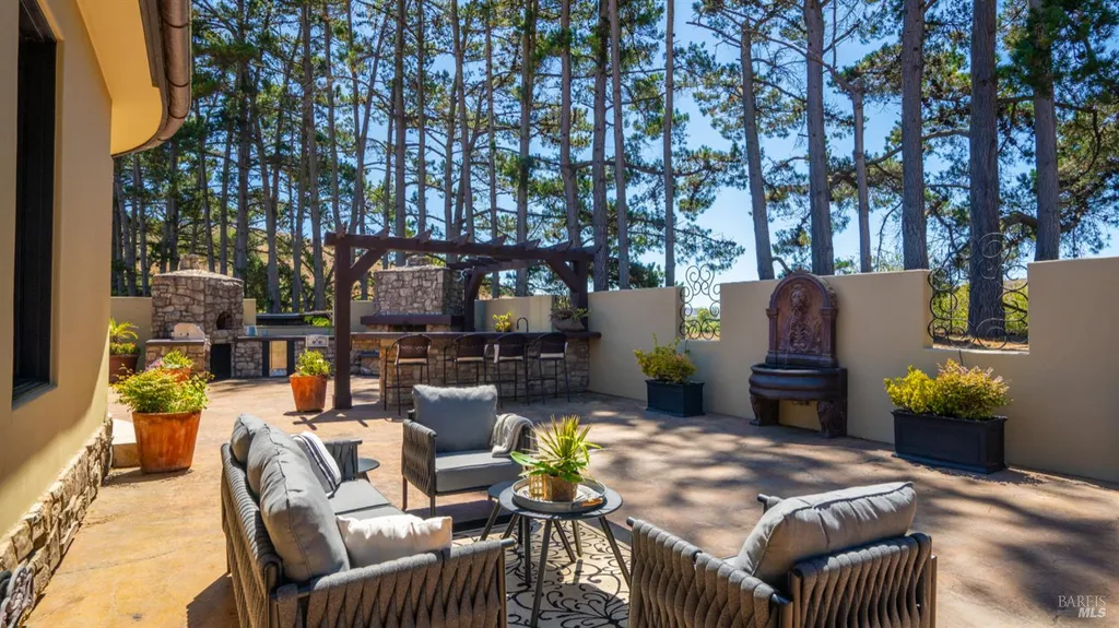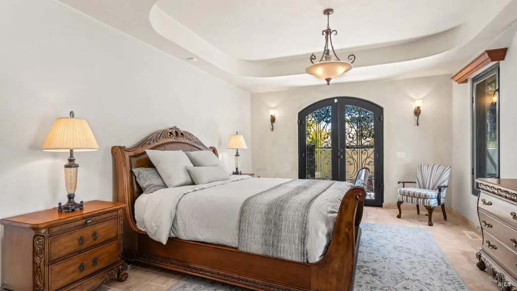 Discover an exquisite, gated Mediterranean-style estate nestled on 9 acres of serene Sonoma County countryside, minutes from Bodega's coastal charm and towns like Petaluma, Bodega Bay and Sebastopol. The property offers a luxurious retreat with sweeping views, privacy, and refined design, a dream for those seeking elegance and tranquility amidst rural beauty. The main residence, built in 2007, spans approximately 3,789 sq ft, featuring 4 bedrooms and 3.5 baths designed with intentional separation for privacy and comfort. The primary suite is strategically tucked away from the communal areas and boasts luxurious touches such as iron-framed doors and windows, and heated travertine flooring. A beautifully appointed 640 sq ft casita, crafted with the same Mediterranean elegance as the main home, offers a welcoming space for guests. The property includes an expansive 5,000 sq ft outdoor entertainment courtyard, complete with a fully equipped kitchen, an inviting outdoor fireplace, an authentic imported Italian pizza oven, and tranquil water features, perfect for al fresco gatherings and leisurely afternoons. Included is a classic two-story barn with 5 stalls, tack room and paddocks. Upstairs in the barn is unfinished space with electricity, offering endless possibilities.