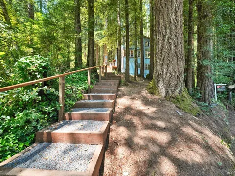 This"fixer-upper", price reflected.(pictures were taken after we cleaned the house), on City water & sewer. Redwood retreat in the heart of Guerneville. Charming multi-level home surrounded by towering redwoods and bathed in natural light. Lovingly owned by one family for decades, offers strong bones, original wood floors, and authentic character throughout. The main level features open living room, fireplace, granite kitchen counters leading to new balcony. Upstairs includes a cozy second living room and 3 bedrooms. The lower level- with a seperate entrance- offers a workshop plus space for additional bedrooms. Just minutes from downtown, the river and hiking trails. A peaceful setting with great neighbors- endless potential to make it yours.