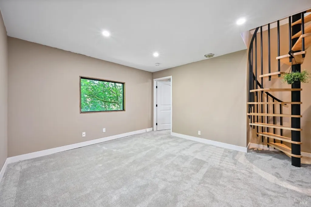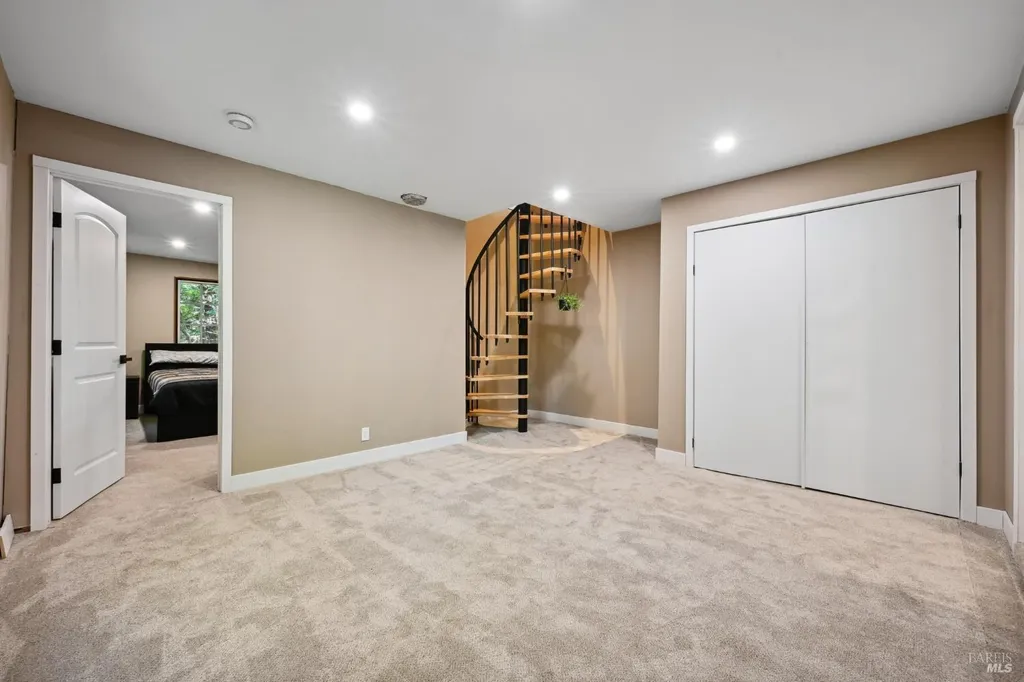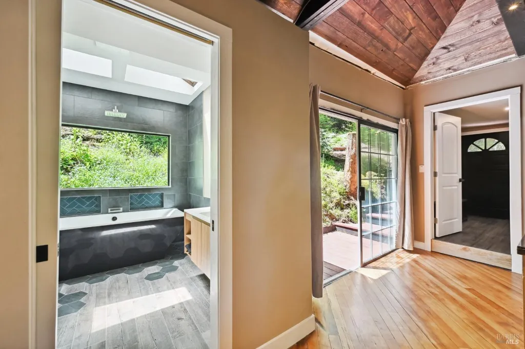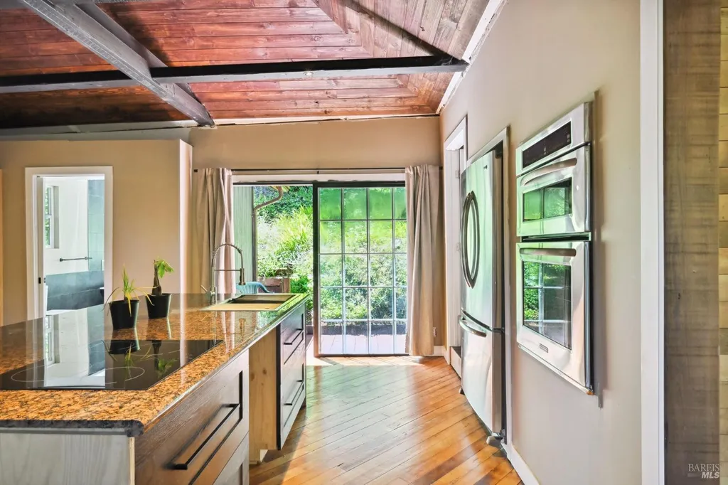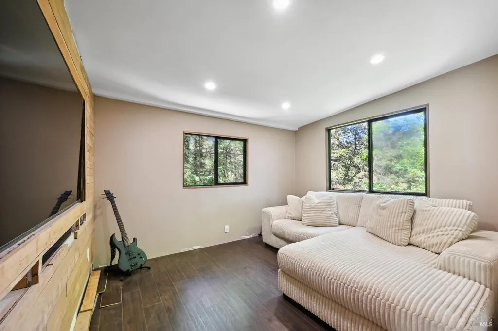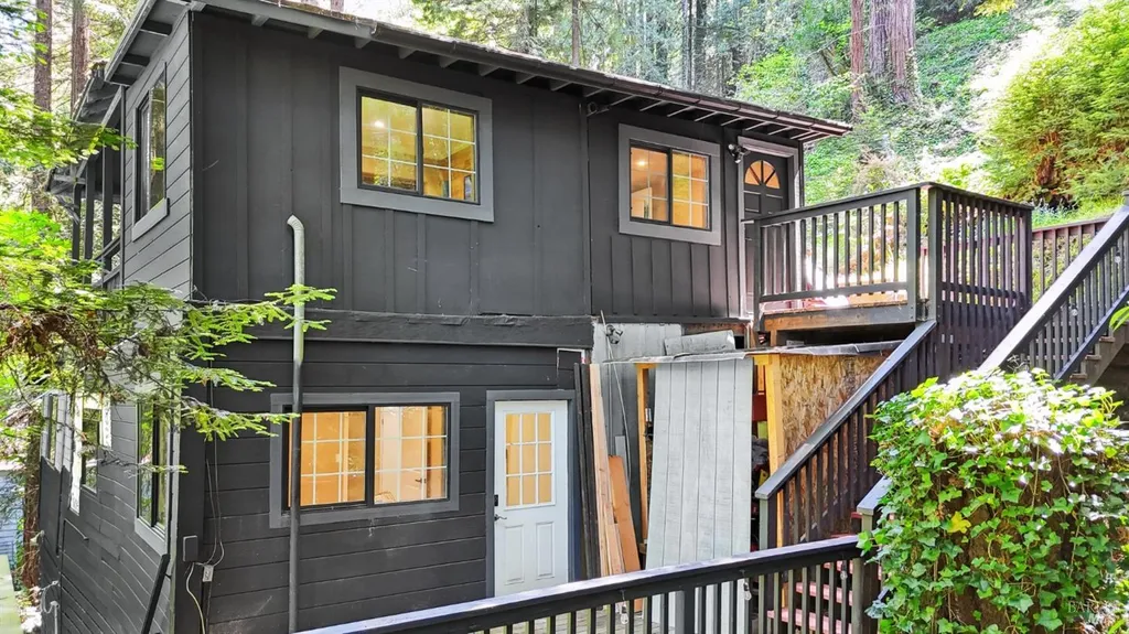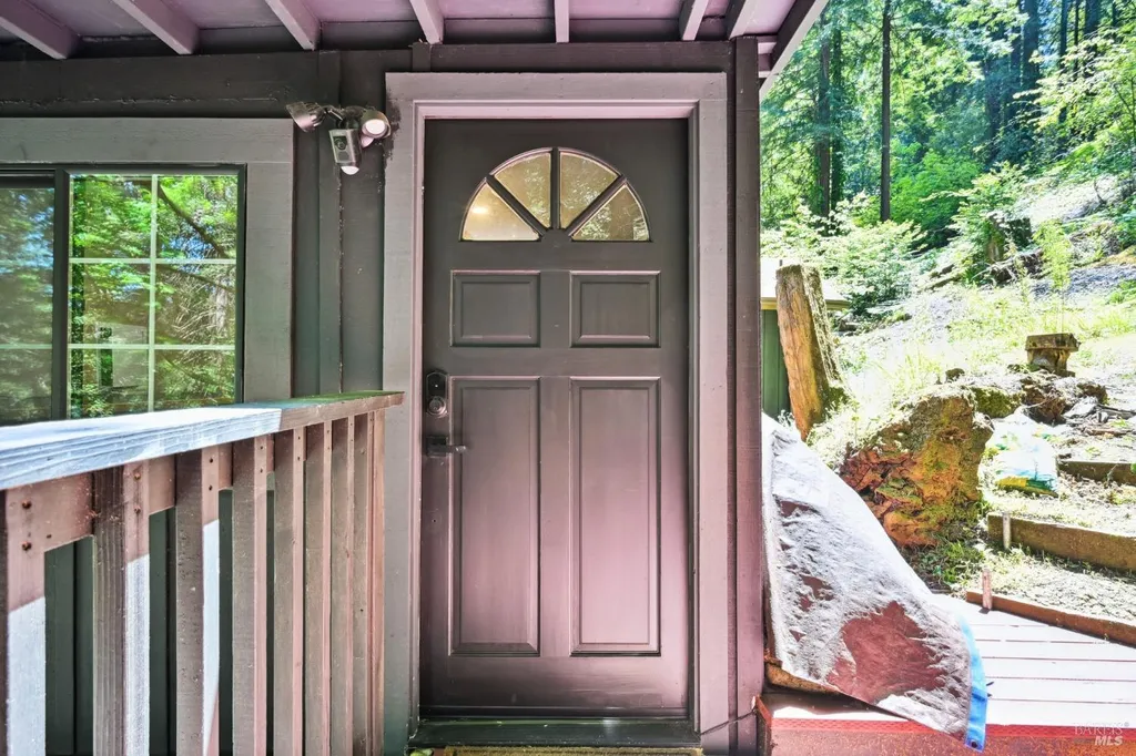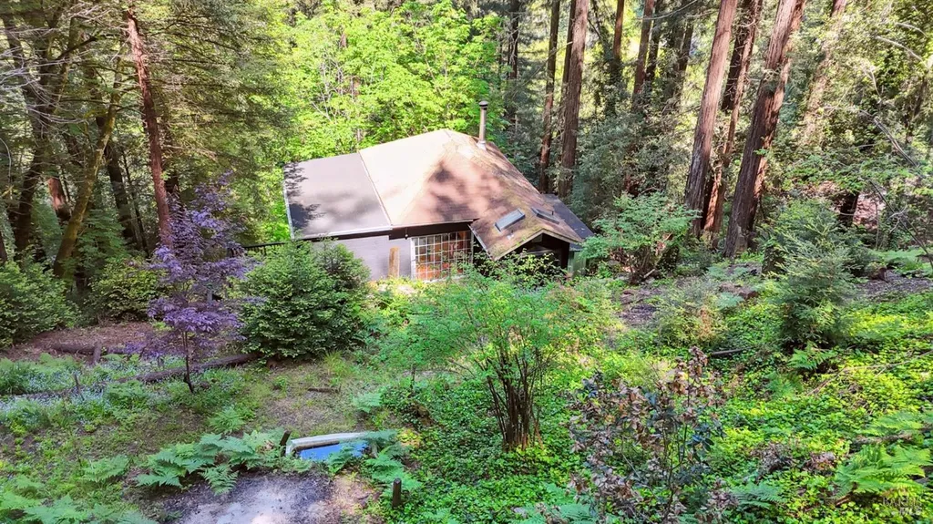 Redwoods Retreat Meets Modern Luxury. Nestled among the towering redwoods near the Russian River, this enchanting 1915 cabin has been reimagined with luxury finishes and designer touches throughout. Step inside to discover a custom entertainment wall with 75'' built-in TV, floating vanities, and porcelain-tiled spa bathrooms with soaking tubs and waterfall showerheads. The chef's kitchen shines with granite countertops, custom cabinetry, and a center island with cooktop, icemaker, and built-in wall oven/microwave. Enjoy elevated features like smart dimmable lighting, USB/USBC charging outlets, drop lighting, and custom wood-paneled ceilings. The lower-level suite boasts a spiral staircase, private entrance, and direct backyard accessideal for guests or extended stays. Entertain or unwind outdoors with a private yard perfect for dining and gardening. Additional perks: Samsung Smart laundry, mini-splits in key rooms, barndoor bath, and Cat-6 wiring for modern connectivity. Beauty, function, and serenity converge in this rare gem, don't miss it. Own Your Dreams!