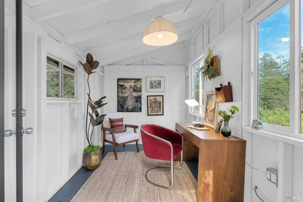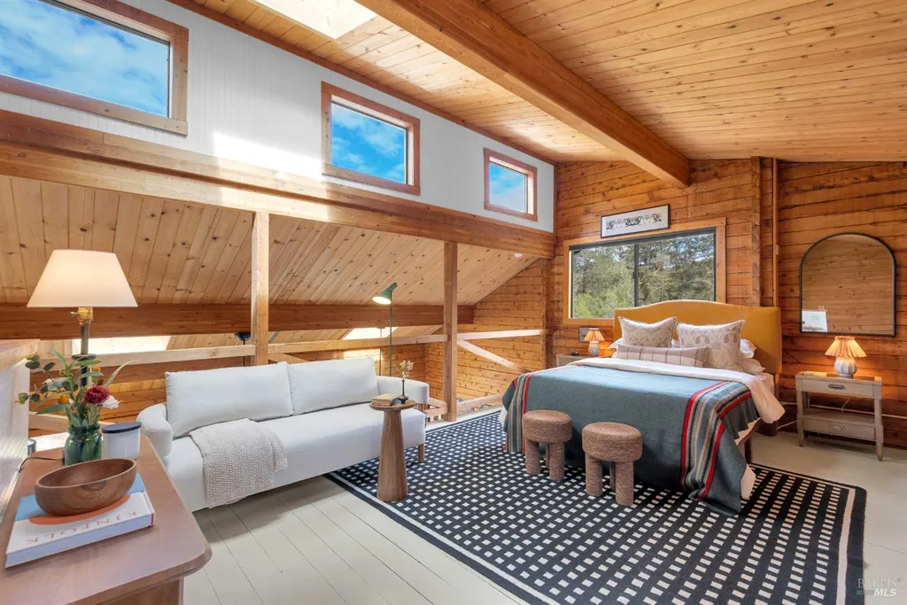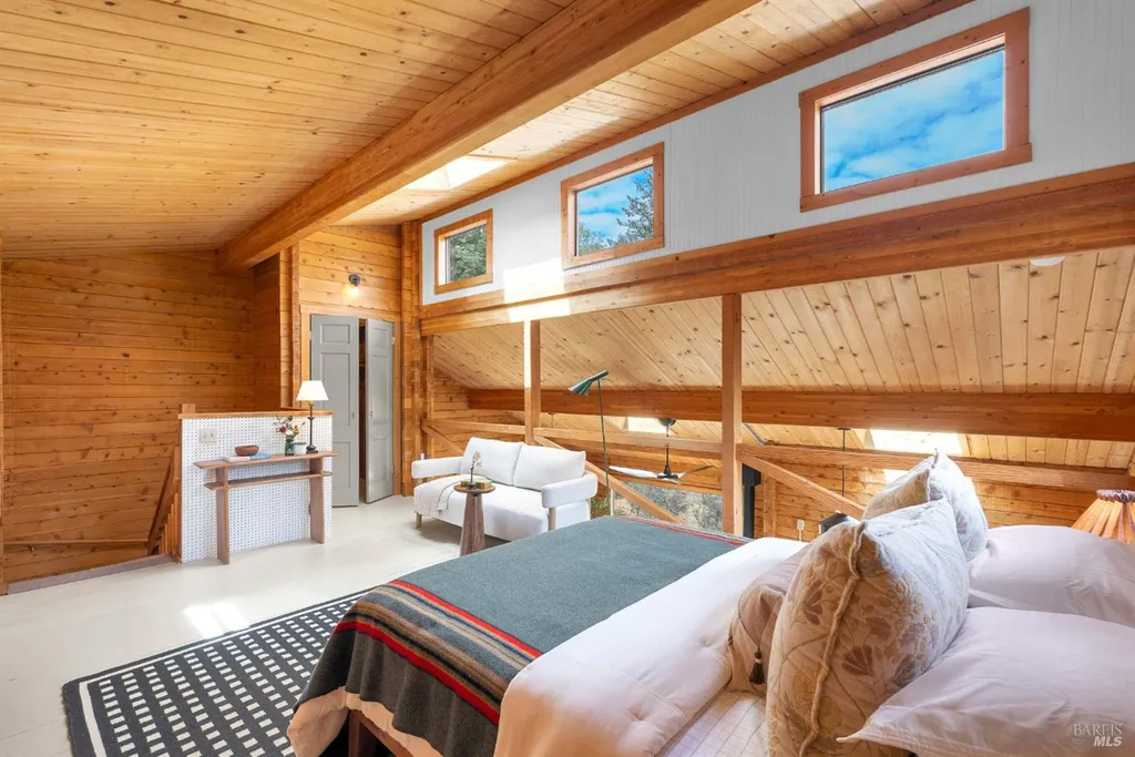 Featured in The NY Times, this one-of-a-kind off grid property combines modern character and rustic charm on approx. 6 acres in the hills of Sebastopol; just 15 min to town, 25 min to the coast and 90 min to SF. The cedar cabin offers 2 bds, 1 ba, & a spacious loft, with light-filled interiors that flow onto an expansive deck designed for outdoor living and entertaining. Surrounded by mature trees, a creek and lush landscaping, the cabin feels like an ultra-private sanctuary. A separate office structure offers a quiet space for working remotely while raised garden beds and a large yard - both surrounded by deer-proof fencing - add color and utility. Perched at the top of the site is a 50-foot lap pool with sweeping views of the surrounding forest and rolling hills. A detached 450 sqft 2-level studio provides endless possibilities: a creative space, fitness room, workshop, or additional retreat. This is a rare opportunity to enjoy off-grid living with modern upgrades that make you feel as connected as you want to be. The land itself is a sight to be seen: a private meadow, open skies and total seclusion at the end of a paved private lane. Welcome to a distinctive and tranquil West County retreat that balances modern comforts with feeling worlds away.